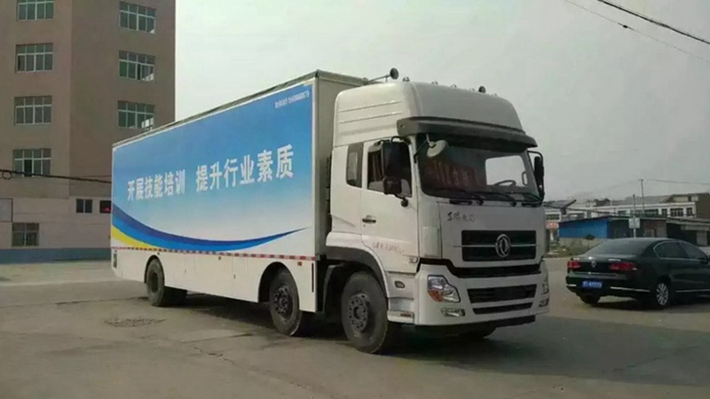 車廂舞臺部分為封閉式頂部封閉?筛鶕(jù)用戶要求選裝導流罩、車輛側面可選裝不帶噴涂及文字,選裝LED屏,選裝后部雙開門的車廂,后部可選裝不帶液壓升降尾板。隨底盤選裝高度不同的駕駛室,高頂駕駛室頂部氣喇叭為選裝件。側防護采用裙板結構,車輛后部為液壓升降圍板,與后防相干涉,故可豁免。 前懸/軸距/后懸對應關系為(mm):1460/1950 5350/3310,1500/1850 5450/3270,該車安裝具有衛(wèi)星定位功能的行使記錄儀。ABS型號:4460046440,生產廠家:威伯科汽車控制系統(tǒng)(中國)有限公司。