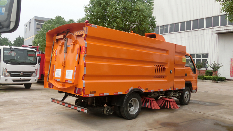 產(chǎn)品功能特點(diǎn)1、采用吸掃結(jié)合的方式收集垃圾,濕式除塵、電液控制,液壓傾翻卸料的作業(yè)方式對(duì)路面進(jìn)行清掃作業(yè)。2、采用副發(fā)動(dòng)機(jī)專(zhuān)門(mén)驅(qū)動(dòng)風(fēng)機(jī)和液壓系統(tǒng),保證行駛過(guò)程中能繼續(xù)工作,保證清掃過(guò)程的連續(xù)性。 3、采用“中置四盤(pán)刷+后置吸嘴”的結(jié)構(gòu)布置,便于清掃裝置與吸嘴的調(diào)整和維護(hù),轉(zhuǎn)場(chǎng)時(shí)整車(chē)通過(guò)性好。 4、副發(fā)動(dòng)機(jī)與風(fēng)機(jī)之間的傳動(dòng)設(shè)置設(shè)有自動(dòng)離合器,可保證副發(fā)動(dòng)機(jī)空載起動(dòng)和停機(jī)時(shí)與風(fēng)機(jī)的自動(dòng)脫離,降低對(duì)副發(fā)動(dòng)機(jī)的沖擊,提高了副發(fā)動(dòng)機(jī)的工作可靠性和使用壽命。 5、掃盤(pán)有遇障避讓保護(hù)功能和復(fù)位功能,遇到障礙物后回縮,越過(guò)障礙物后復(fù)位。 6、根據(jù)不同清掃工況,在不增加副機(jī)油門(mén)的情況下,實(shí)現(xiàn)掃盤(pán)高中低三檔調(diào)速,即能保證在各種污染狀況下都有良好的清掃效果,同時(shí)節(jié)省油耗以及刷毛的損耗。 7、采用可隨路面自動(dòng)找平的全浮動(dòng)式吸嘴,吸塵效果好,使用壽命長(zhǎng)。 8、進(jìn)口液壓閥組,能保證整車(chē)的液壓動(dòng)作的穩(wěn)定性和流暢性。 9、進(jìn)口液壓馬達(dá),能保證掃盤(pán)的工作穩(wěn)定性,使用壽命長(zhǎng)。 10、進(jìn)口原料制成的外翻式吸塵管,有效防止吸塵管被劃破、凍裂,增加使用壽命。 11、精密無(wú)縫冷彎液壓油管,內(nèi)壁無(wú)氧化雜質(zhì),保證液壓油路清潔,不堵閥。 12、掃盤(pán)刷臂內(nèi)使用高性能工程塑料隔套,耐磨性好,免打黃油免維護(hù),節(jié)省人力物力。 13、不銹鋼水箱、垃圾箱,可抗一般性腐蝕,增加箱體的使用壽命。 14、超寬后門(mén)且大于90度的開(kāi)啟角度,更易于傾倒垃圾,清理垃圾箱。 15、垃圾箱傾翻角度大于48度,易于傾倒垃圾。 16、可加裝前沖、后灑、噴霧、自潔卷盤(pán)、作業(yè)監(jiān)控系統(tǒng)、輔助吸管裝置、推雪鏟等。
