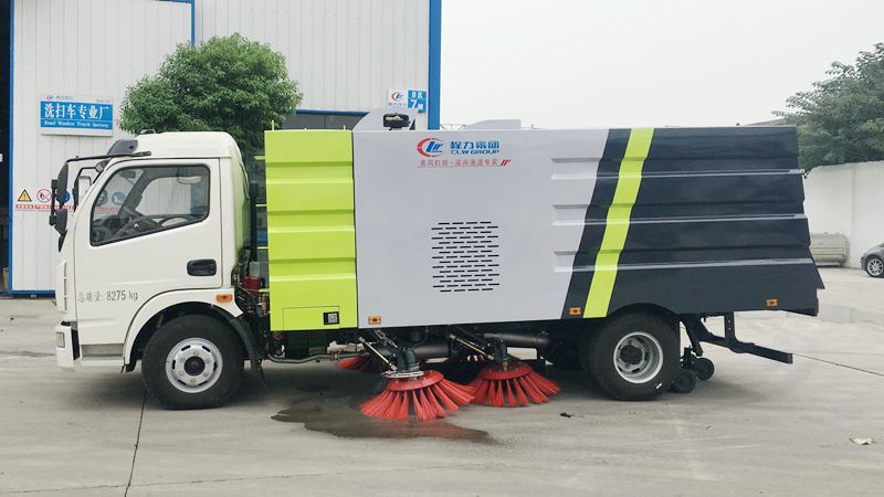 1、采用吸掃結合的方式收集垃圾,濕式除塵、電液控制,液壓傾翻卸料的作業(yè)方式對路面進行清掃作業(yè)。
