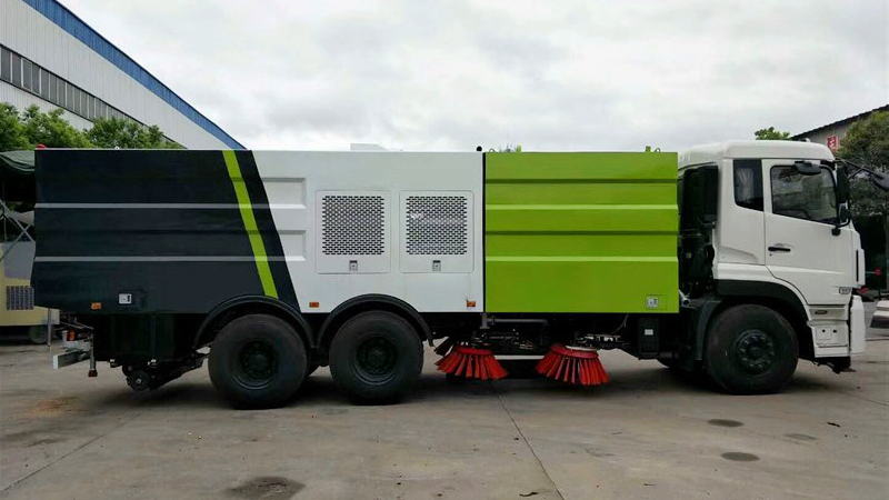 1、采用吸掃結合的方式收集垃圾,濕式除塵、電液控制,液壓傾翻卸料的作業(yè)方式對路面進行清掃作業(yè)。